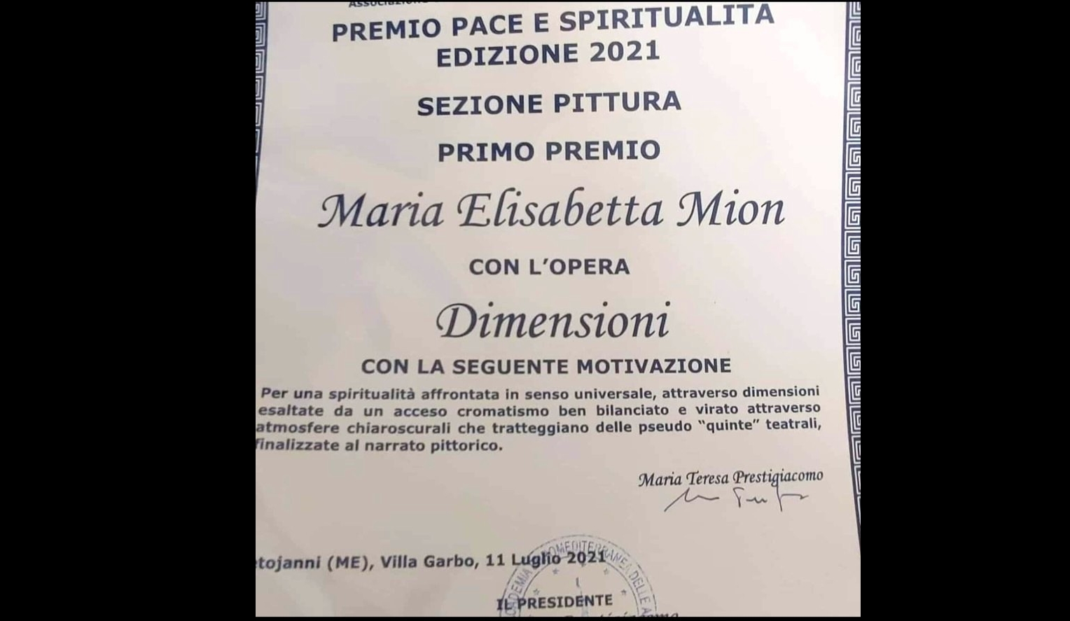 2021 – Premio "Pace e Spiritualità" dell'Accademia Euromediterranea di Messina: Primo Premio con l'opera Dimensioni.